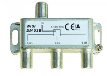Splitter, 3-way The DM O3 B is a triple distributor which enables the symmetrical division of cable signals on 3 lines. The distribution attenuation is 5.9 dB. High shielding properties (class A) guarantee an interference-free transmission of the signals in the input and distribution systems. A fast and safe connection is ensured through F-sockets.