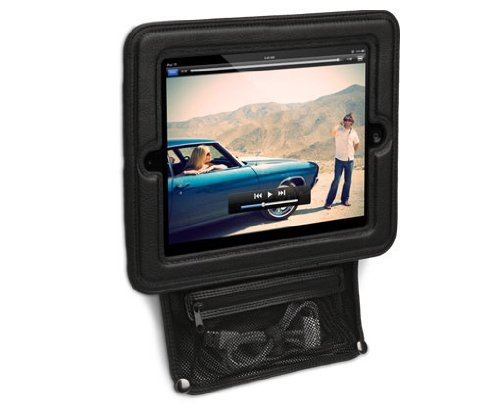 - Cushioned case securely straps your iPad to your car's headrest for backseat viewing; strap adjusts to fit most headrests