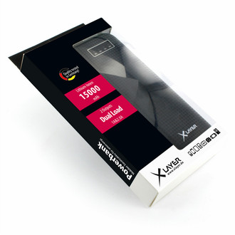 XLayer Carbon Black 15.000. Colour of product: Black, Charger compatibility: Smartphone, Tablet, Universal. Battery technology: Lithium-Ion (Li-Ion), Battery capacity: 15000 mAh, Charging source: USB. USB input port type: Micro-USB. Width: 16.1 cm, Depth: 2.22 cm, Weight: 325.9 g. Cables included: USB, Adapters included: Micro-USB B
