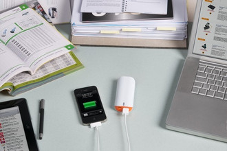 This lightweight 5200mAh li-polymer battery is all you need to recharge your mobile devices. It is equipped with a LED indicator for charging status, built-in overcharge protection and USB cable.