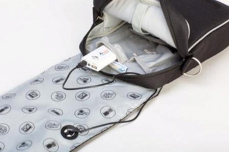 This bag features several easy compartments. The main compartment is slightly smaller than A4 size that fits exactly the iPad or a netbook. The solar panel is on the outside flap of the bag attached. The City bag has a adjustable shoulder strap, is waterproof and made from recycled PET material.