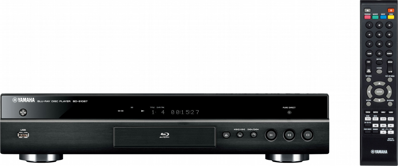 High performance Blu-ray Disc Player designed for optimum matching with Yamaha AV Receivers. The SCENE function integrates operation and the front panel has the same clean, graceful design.
