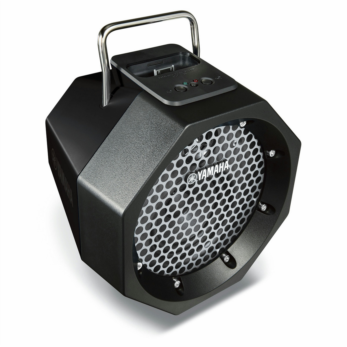Yamaha designed the octagon-shaped body to deliver stability, toughness and style. Choose from four strong colors - white, dark blue, green and black - each accented by a color-matched, perforated steel grille.