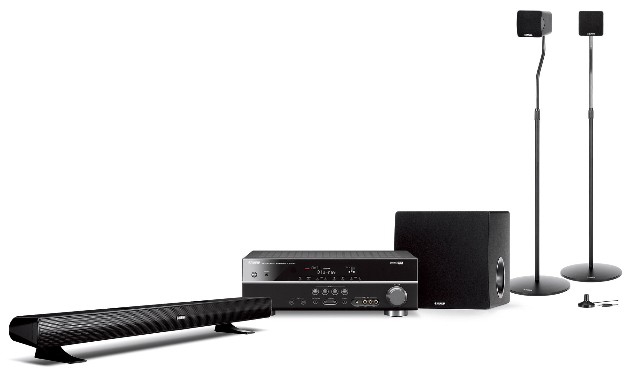 3D-compatible HTiB includes HD Audio capable AV receiver with 1080p-compatible HDMI repeater (4 in/1 out), a low and slim front speaker, compact surround speakers (with floorstanding speaker stands) and an Advanced YST subwoofer.