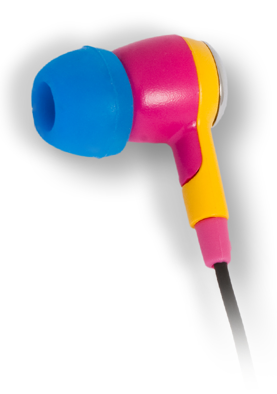 9 mm, Neodymium, 16 ohms, 98 dB, 30 Hz - 20 kHz, 1.25 m, Pink/Yellow