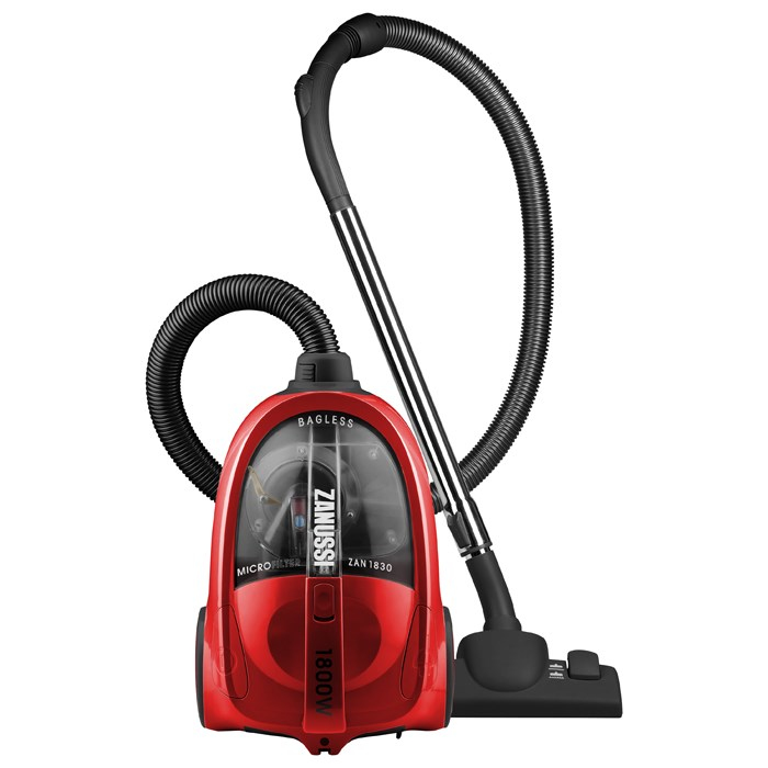 Zanussi ZAN1830. Maximum input power: 1800 W, Suction power: 324 W. Type: Cylinder vacuum, Dust container type: Bagless, Colour of product: Black, Red. Cleaning type: Dry&wet, Proper use: Home, Cleaning surfaces: Carpet, Hard floor. Width: 385 mm, Depth: 282 mm, Height: 262 mm
