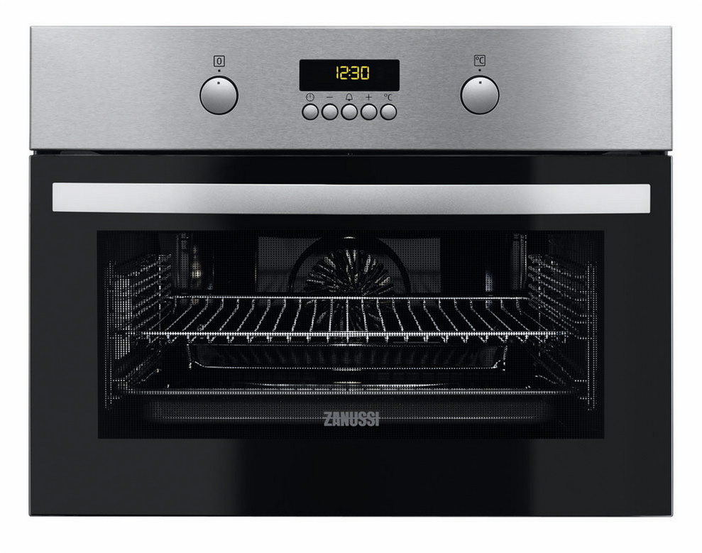 Zanussi ZOK37902XK. Total oven(s) interior capacity: 45 L, Total oven power: 3000 W, 1st oven interior capacity: 45 L. Colour of product: Stainless steel, Control type: Buttons, Control position: Top front. Timer type: Digital. Energy efficiency class: A. Width: 594 mm, Depth: 567 mm, Height: 455 mm